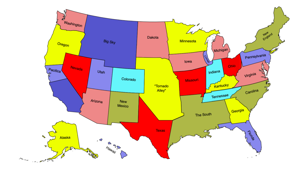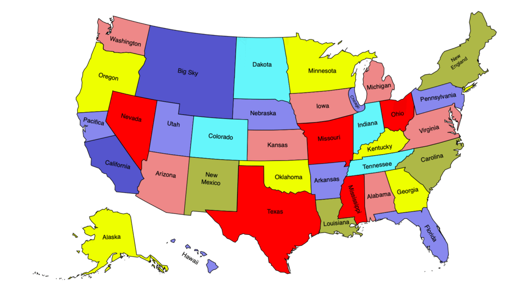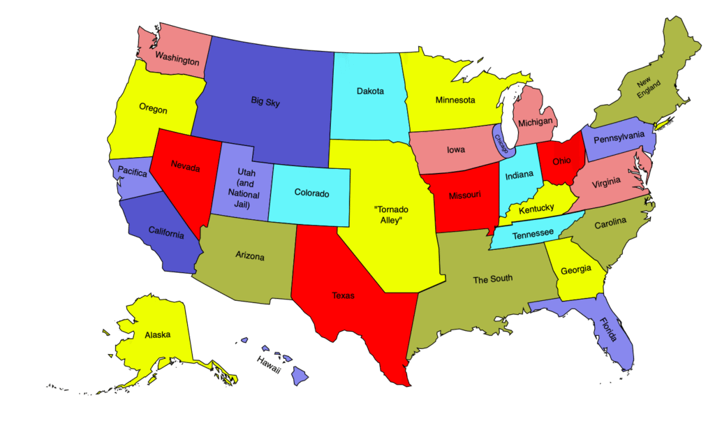 Idaho, Montana, and Wyoming are big and beautiful places, but their combined populations could fit into a minor league baseball stadium. Such inefficiency will never do, so they shall all be combined into a new state simply called Big Sky. Based on precedent established earlier, Idaho should have control due to having the most people of the three, but the state known for potatoes doesn’t have as cool of a nickname as Montana’s.